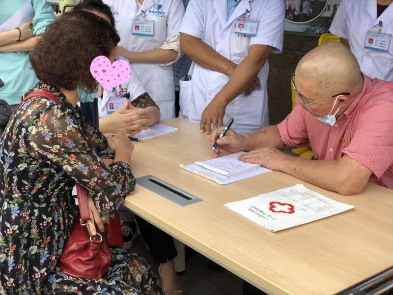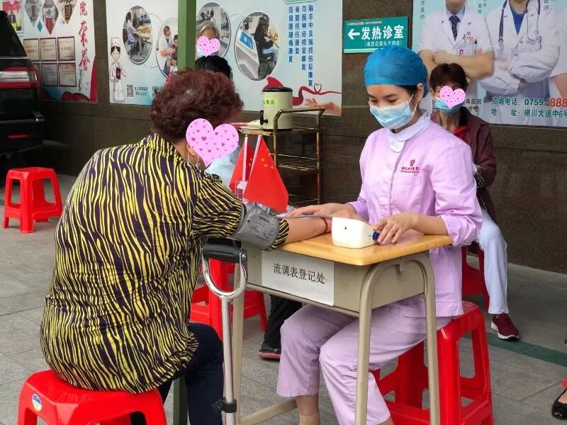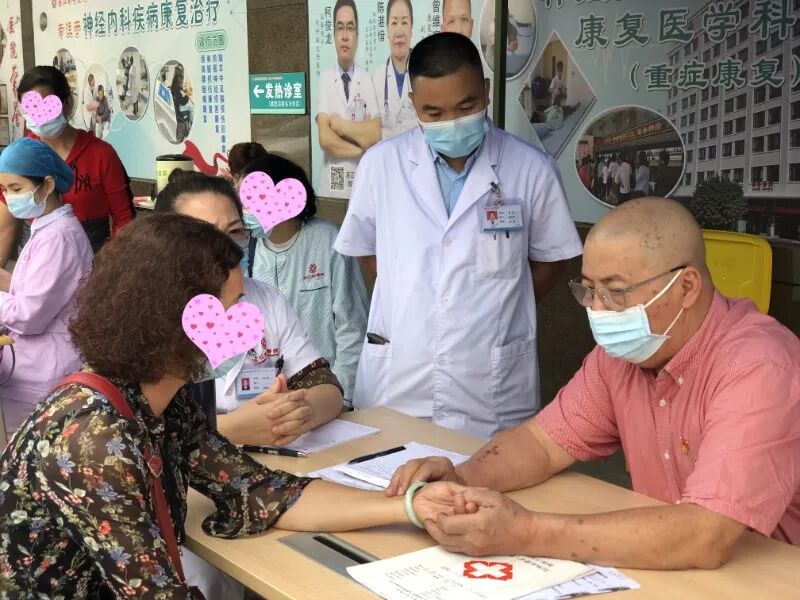 現(xiàn)場醫(yī)護(hù)人員為前來的患者測量血壓,并耐心細(xì)致的解答患者的各種問題。