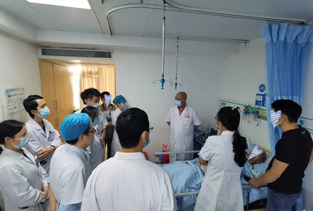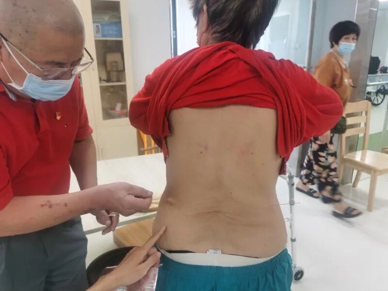 陳建平教授帶領(lǐng)康復(fù)治療團(tuán)隊對重癥患者進(jìn)行教學(xué)查房,對重癥患者的排痰手法進(jìn)行示范,臥床的患者所采用的心肺功能康復(fù)治療方法進(jìn)行教學(xué)和輪訓(xùn),該患者已經(jīng)出現(xiàn)舟狀腹,嚴(yán)重營養(yǎng)不良,并且胃腸黏連嚴(yán)重,陳教授采用傳統(tǒng)按摩手法和現(xiàn)代康復(fù)方法治療讓大家對比著學(xué)、做,去感受,整個康復(fù)治療師團(tuán)隊收獲滿滿!